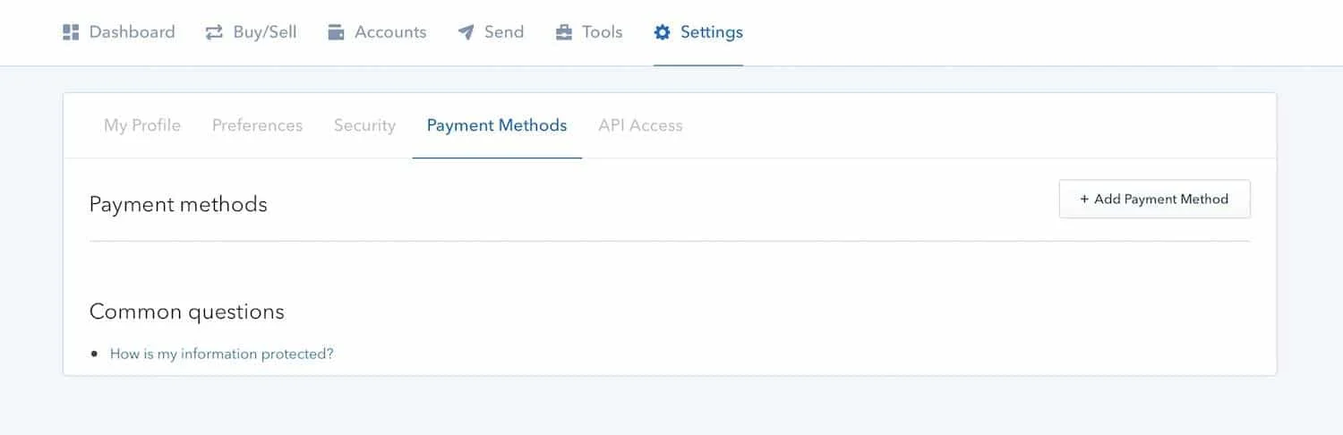 När du verifierar din e-postadress kommer du för första gången in på ditt konto hos Coinbase. Där kan du fylla i frivilliga uppgifter för din profil. Ju mer information du lämnar, desto högre blir din köp- och försäljningsgräns på kontot. Coinbase börjar med att fråga om du är en individ eller företag för att bestämma din typ av konto. Därefter blir du tillfrågad om att verifiera ditt mobilnummer och ladda upp bild på din identifikation. Avslutningsvis får du välja vilken betalningsmetod du vill använda.