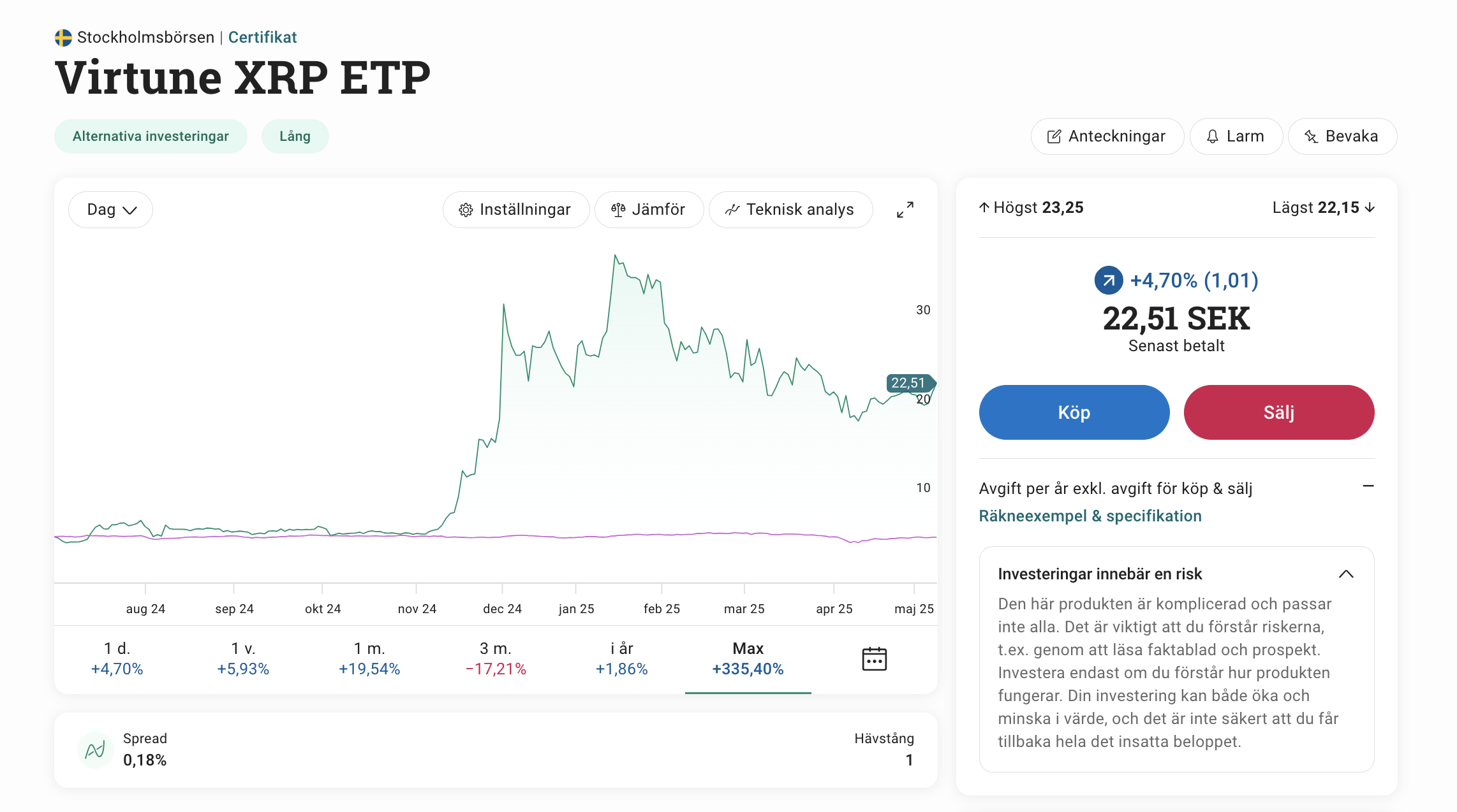 I Sveriges stoppades handeln i certifikat med Ripple som underliggande tillgång hos både Nordnet och Avanza. Dessa certifikat togs sedan bort från utbudet.