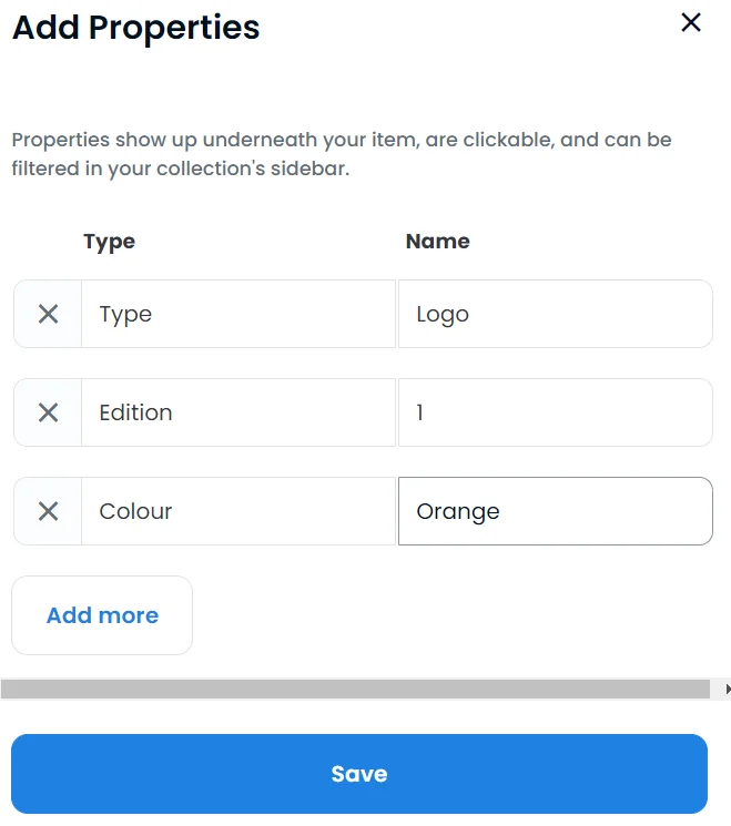 Med Levels menas mätbara egenskaper eller funktioner som just denna NFT ska ha. Det kan exempelvis vara styrka, snabbhet, glädje eller rikedom. I likhet med övriga val går det även att hoppa över denna punkt.