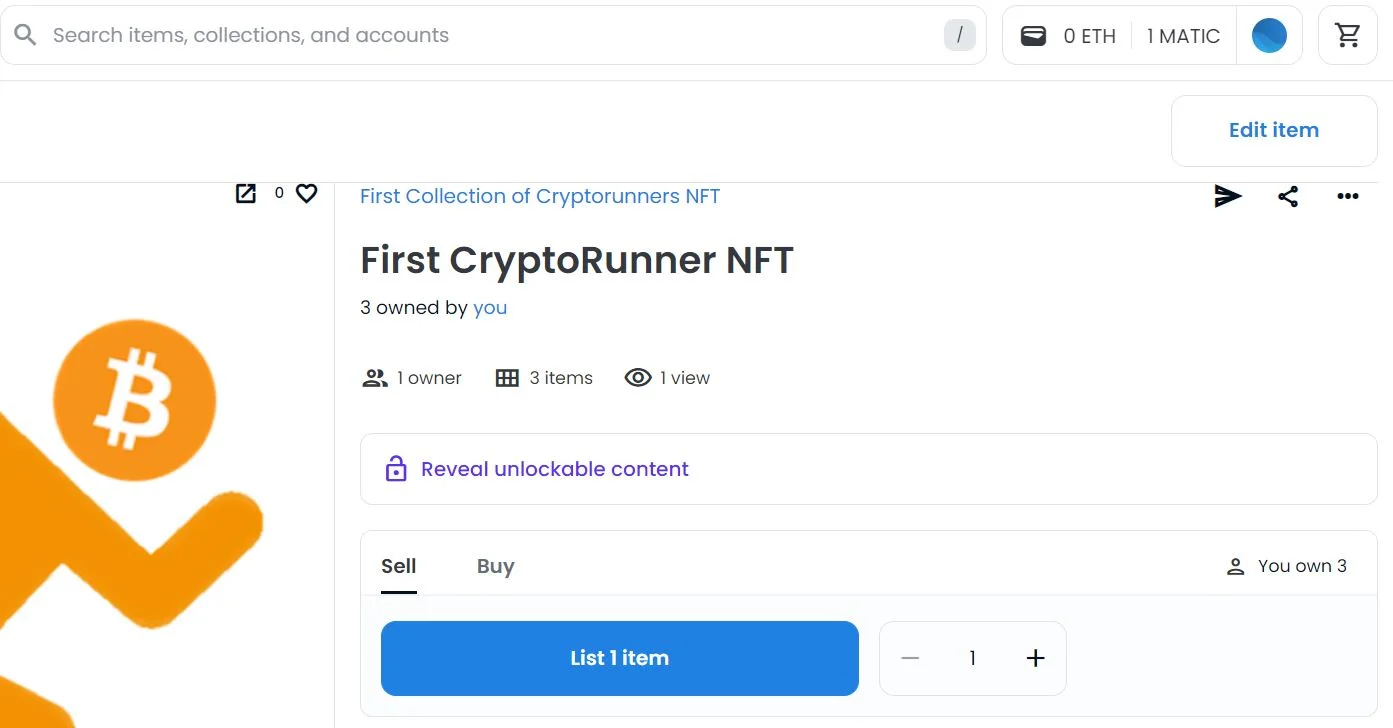 I detta exempel: First CryptoRunner NFT