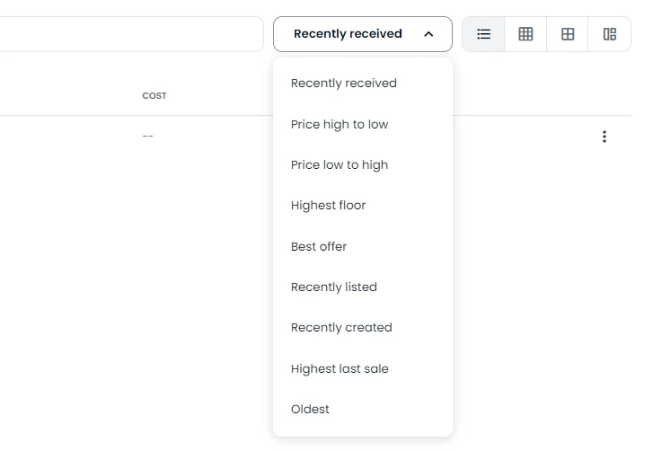 Klicka på scrollistan längst till höger där det står ”Recently received”. Välj ”Best offer”. Då kommer samtliga NFT:er presenteras som för tillfället har ett bud.