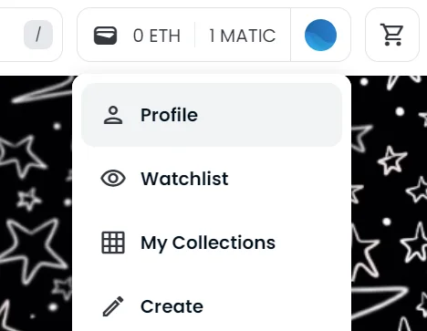 Om du skapar NFT på OpenSea kan du hålla musen på profilbilden och välja ”Profile” för att administrera din kontoinformation.