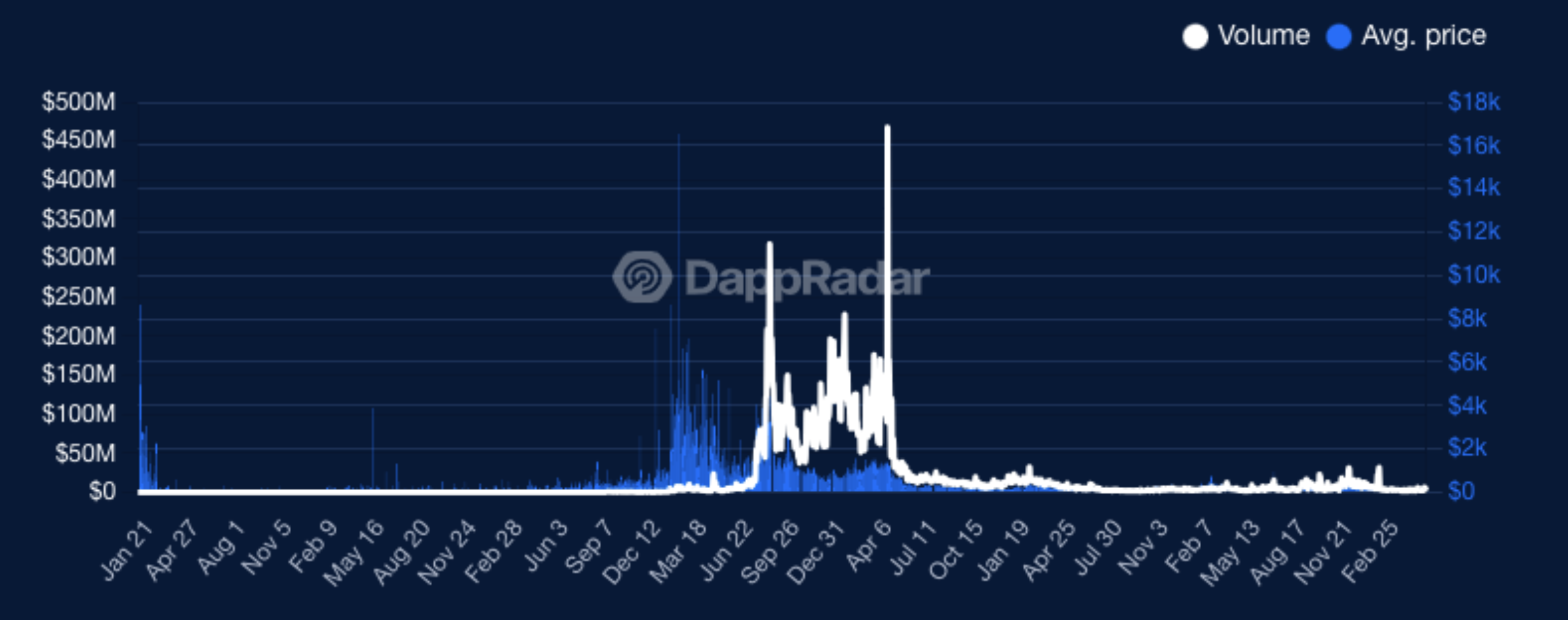 Fram till maj 2021 var det relativt få transaktioner och mycket liten omsättning på OpenSea. Detta speglar även hela NFT-marknaden i stort. Därefter ökade handeln mycket kraftigt. Vissa dagar var handelsvolymen på över 250 miljoner USD.