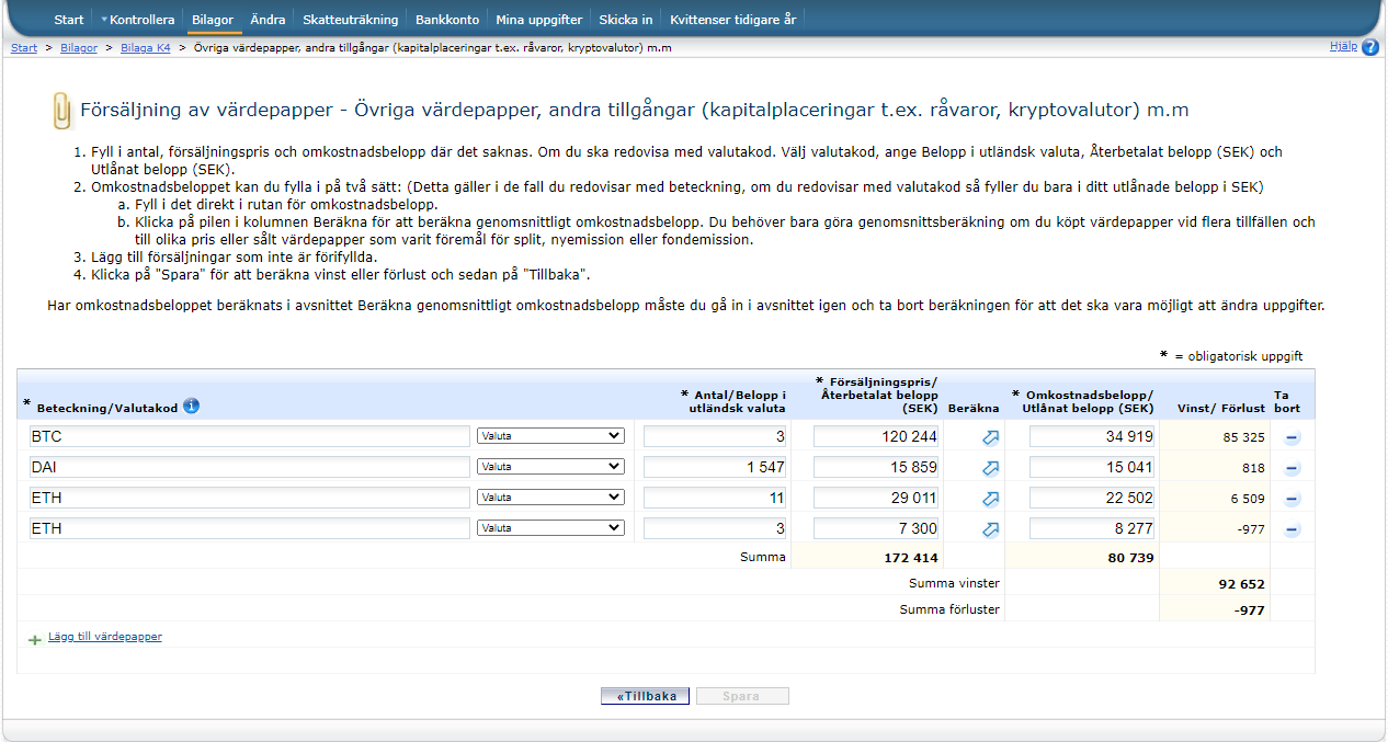 Om du sålt kryptovalutor bör du också veta att du måste deklarera dina affärer till Skatteverket. Sista dagen att deklarera är vanligtvis i början av Maj varje år. För år 2025 var de sista datumen att lämna in deklarationen den 2:a Maj.