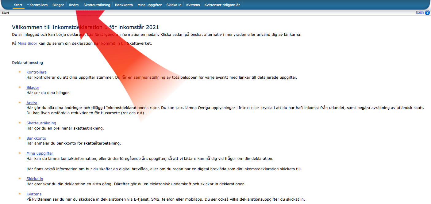Efter att du gjort alla dina skatteberäkningar är det dags att lämna in din deklaration. Du kan lämna in den antingen fysiskt via post eller online. Vi kommer primärt att visa hur du deklarerar skatt på kryptovaluta online. Nedan visar vi dig hur du lämnar in din skatterapport till Skatteverket.