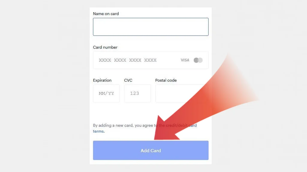Gå till “Settings” och därefter till “Payment Methods”. Där kan flera olika betalningsalternativ väljas. Kortbetalning är det snabbaste alternativet då pengarna kan användas för handel inom 1-2 minuter. Klicka på “Add Card” →