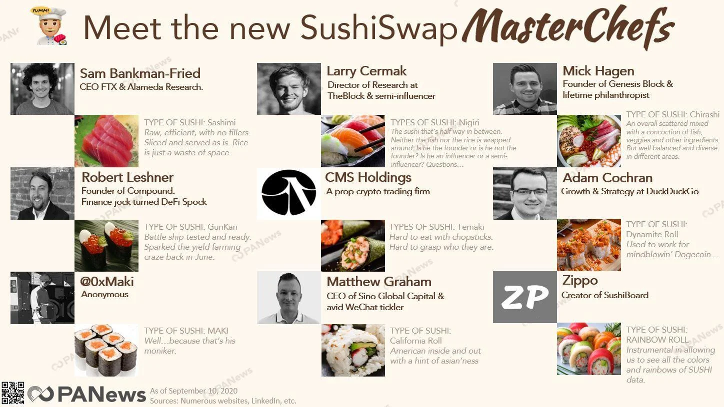 Till skillnad mot Uniswap valde däremot utvecklarna att vara anonyma och enbart kommunicera via Twitter under alias Chef Nomi, och OxMaki. Att projekt lanseras av anonyma personer är däremot inget ovanligt inom kryptovärlden även om transparens ofta gynnar projektets utveckling långsiktigt.