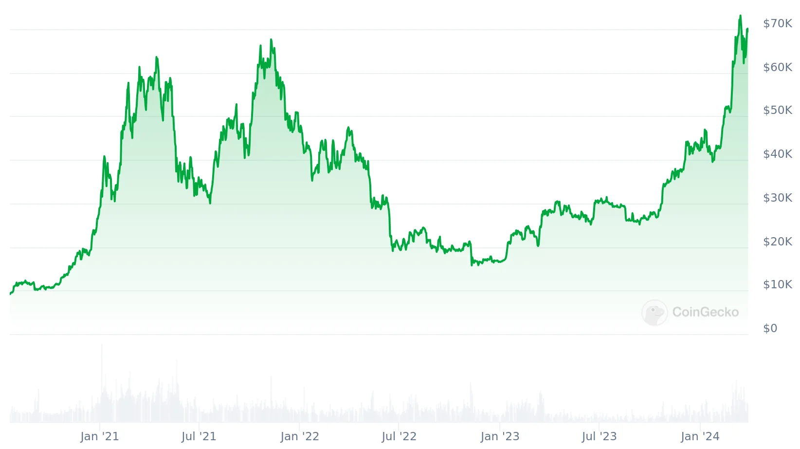 Bitcoin kurs i USD, september 2020 – 2024:
