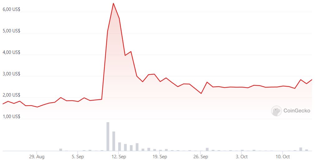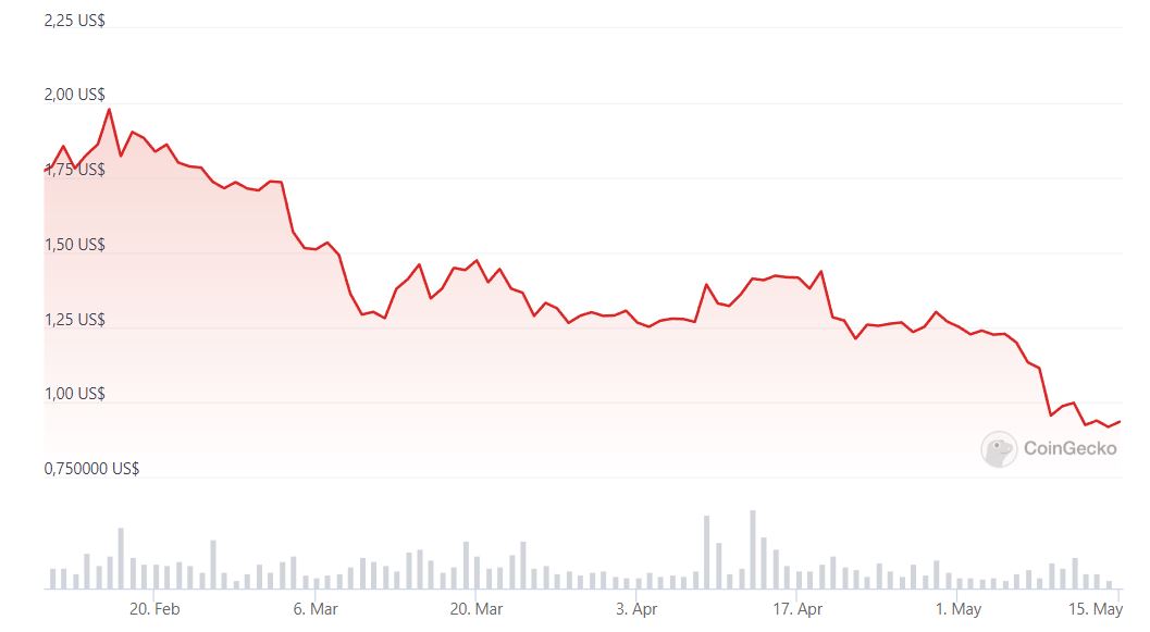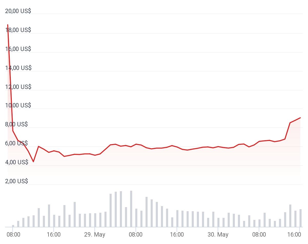 Det är orsaken till att kursen visas på 5 USD. i grafen ovan från Coingecko. En del såg Luna 2.0 som räddningen på Terras kollaps medan andra snabbt sålde av sitt innehav även om det innebar stora förluster.