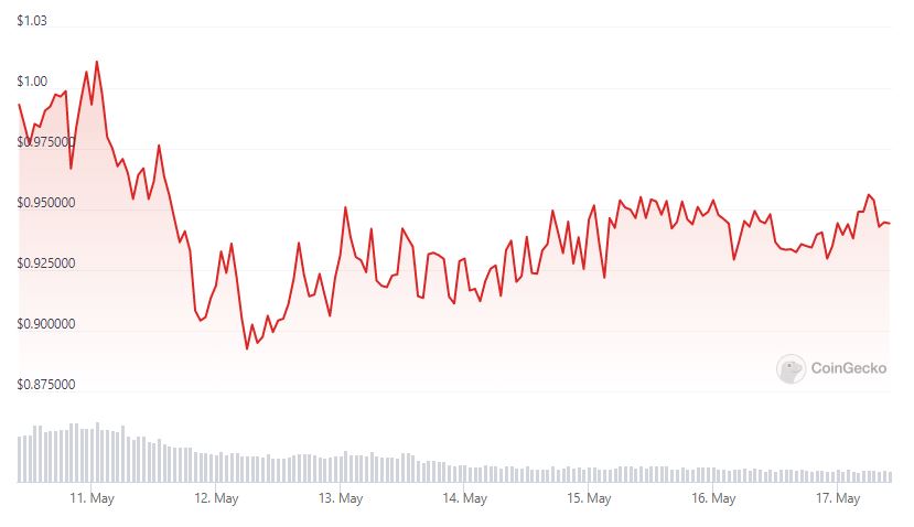 Även om vissa var kritiska mot blockkedjans struktur var majoriteten positiv och fortsatte att investera i LUNA och projekt på blockkedjan. Men allt detta skulle få ett abrupt slut i maj 2022. Dess största stablecoin, UST, tappade då sin pegg. Det betyder att den handlades för betydligt lägre summa än 1 USD. Det medförde två negativa händelser.