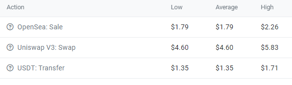 Low, Average och High är hur fort som transaktionen förväntas gå igenom. Som visas i tabellen är det även dyrare att göra en swap än att genomföra en vanlig överföring.