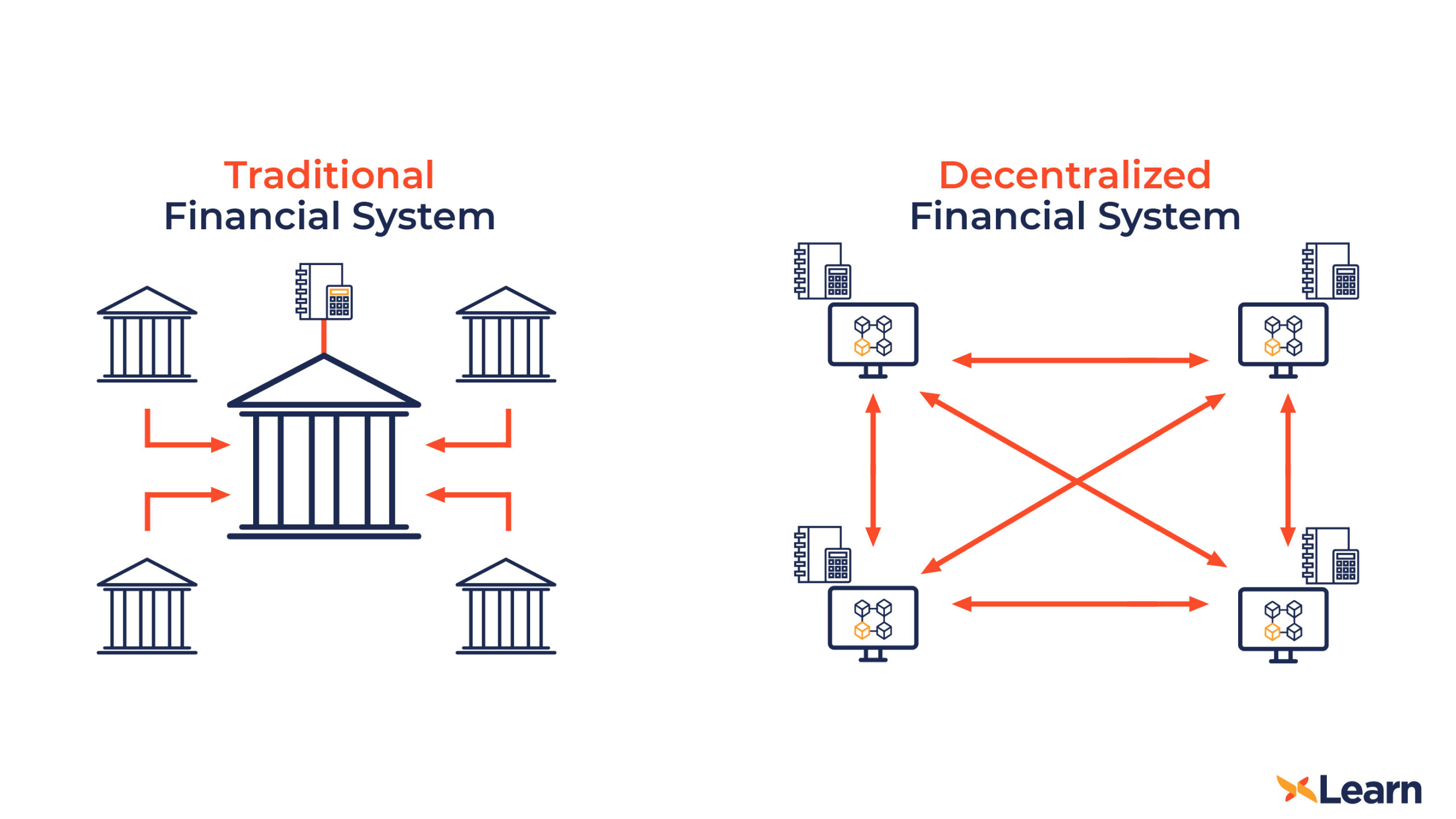 Dessa tjänster är uppbyggda av smarta kontrakt och innebär exempelvis att kryptovaluta kan lånas ut, belånas eller växlas via dessa automatiserade kontrakt. Motparterna behöver varken lita på varandra eller gå via en centraliserad part (exempelvis en bank) när affärsuppgörelser sker med digitala tillgångar och kryptovaluta.